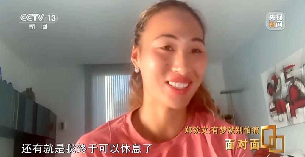 郑钦文:终于做到了,不敢相信我拿到了金牌。还有就是我终于可以休息了,所以在奥运会结束的第三天我就感冒了,感冒了一周。