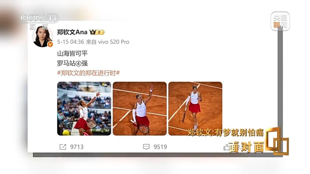 郑钦文:网球确实在一点一点改变着我的性格,让我变得更加坚韧,让我变得学会更加控制自己。因为当你赢的时候,你会发现世界非常美好,输球反而是你慢慢变成熟的一个过程。