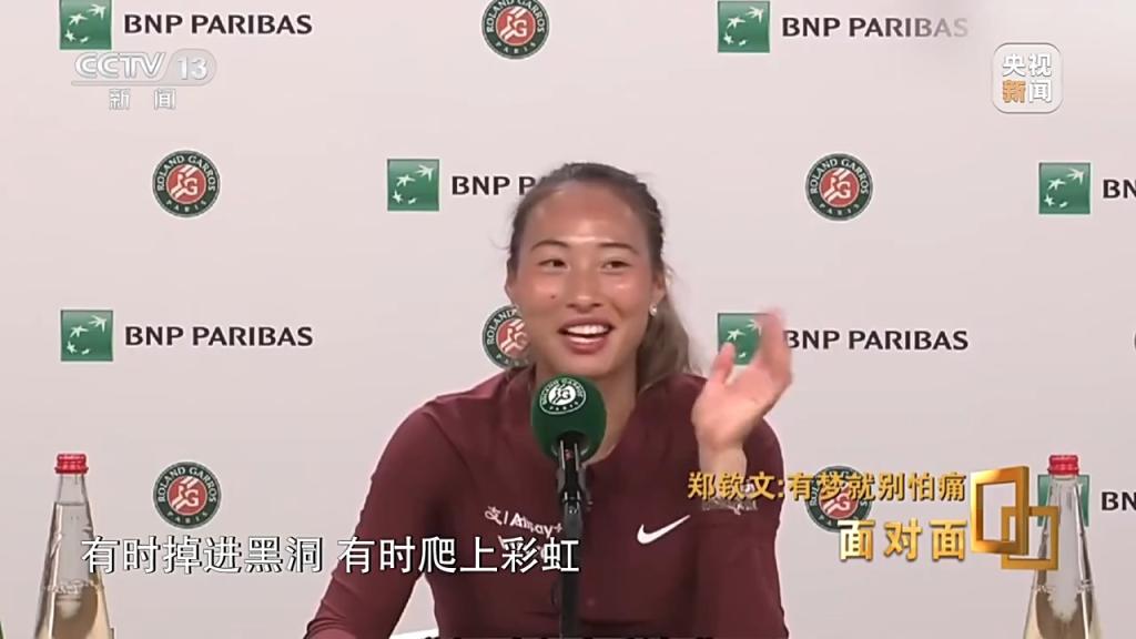 郑钦文:我觉得我对胜利的渴望太大了,所以没有办法平静地接受每一次失败。如果我对失败没有感受到痛苦,这也不会帮助我继续成长;反而是这两者很好地结合在一起,才让我慢慢成为一个更好的球员。其实我很喜欢一句话,“可能每次成长都需要伴随着一点点的痛苦”。